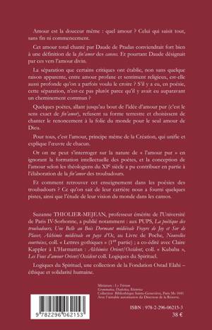 Amour est la douceur même : quel amour ? Celui qui saisit tout, sans fin ni commencement. S'il y a eu, en poésie, séparation entre amour profane et sentiment religieux, n'est-ce pas parce qu'il y avait eu auparavant un cheminement commun ? Quelques poètes refusent sa forme terrestre à l'amour pur. C'est la trace de la notion d'amour pur dans les poésies des troubadours que Suzanne Thiolier-Méjean étudie ici.