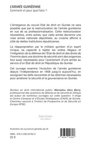 L'émergence du nouvel Etat de droit en Guinée ne sera possible que par la restructuration de l'armée guinéenne en vue de sa professionnalisation. Cette restructuration nécessitera, entre autres, que cette armée devienne une vraie armée nationale dépolitisée, au civisme affirmé à côté de réelles Institutions républicaines. La réappropriation par le militaire guinéen d'un esprit civique, sa capacité à rejeter les ordres illégaux et l'intégration de la défense de l'État de droit et des droits de l'homme dans une doctrine de sécurité sont des exigences tout aussi nécessaires pour l'avènement d'une armée au service d'un État de droit en République de Guinée. Cet ouvrage examine l'évolution de l'armée guinéenne depuis l'indépendance en 1958 jusqu'à aujourd'hui, en soulignant les défis rencontrés et les réformes nécessaires pour améliorer la sécurité et la gouvernance en Guinée.