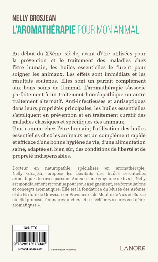 Des recettes au naturel pour chiens, chats, oiseaux et chevaux. Au début du XXème siècle, avant d’être utilisées pour la prévention et le traitement des maladies chez l’être humain, les huiles essentielles le furent pour soigner les animaux. Les effets sont immédiats et les résultats soutenus. Elles sont un parfait complément aux bons soins de l’animal. L’aromathérapie s’associe parfaitement à un traitement homéopathique ou autre traitement alternatif. Anti-infectieuses et antiseptiques dans leurs propriétés principales, les huiles essentielles s’appliquent en prévention et en traitement curatif des maladies classiques et spécifiques des animaux. Tout comme chez l’être humain, l’utilisation des huiles essentielles chez les animaux est un complément rapide et efficace d’une bonne hygiène de vie, d’une alimentation saine, adaptée et, bien sûr, des conditions de liberté et de propreté indispensables.