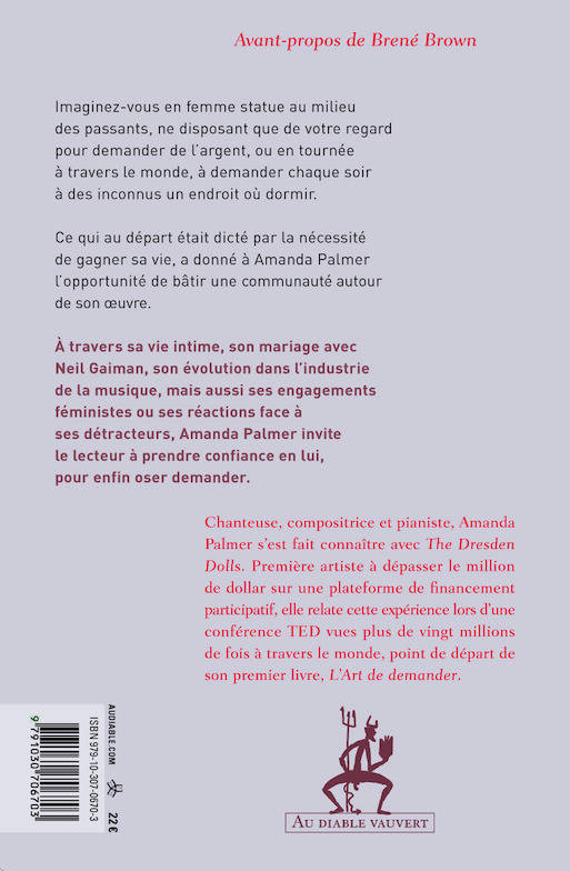 À travers sa vie intime, son mariage avec Neil Gaiman, son évolution dans l’industrie de la musique, mais aussi ses engagements féministes ou ses réactions face à ses détracteurs, Amanda Palmer invite le lecteur à prendre confiance en lui, pour enfin oser demander.
