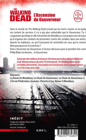 Dans le monde de The Walking Dead, envahi par les morts-vivants où quelques-uns tentent de survivre, il n’y a pas plus redoutable que le Gouverneur. Ce tyran sanguinaire qui dirige la ville retranchée de Woodbury a son propre sens de la justice, qu’il organise des combats de prisonniers contre des zombies dans une arène pour divertir les habitants, ou qu’il tronçonne les extrémités de ceux qui le contrarient. Mais pourquoi est-il si méchant ? Dans L’Ascension du Gouverneur, le lecteur découvre pour la première fois comment et pourquoi Philip Blake est ce qu’il est, ce qui l’a conduit à devenir… le Gouverneur.