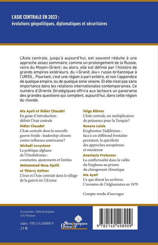 L'Asie centrale, jusqu'à aujourd'hui, est souvent réduite à une approche assez sommaire, comme un prolongement de la Russie, voire du Moyen-Orient ; ou alors, elle est définie par l'histoire de grands empires extérieurs, du « Grand Jeu » russo-britannique à l'URSS... Pourtant, c'est une région à part entière, et non l'appendice de quelque empire, ou de quelque zone voisine. Et elle n'est pas sans importance dans les relations internationales contemporaines. Ce numéro d'Orients Stratégiques offrira aux lecteurs un panorama des grandes questions qui comptent, aujourd'hui, dans cette région du monde.
