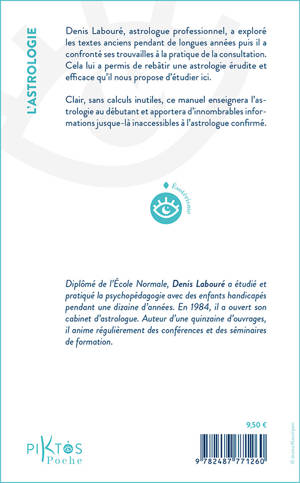 Denis Labouré, astrologue professionnel, a exploré les textes anciens pendant de longues années puis il a confronté ses trouvailles à la pratique de la consultation. Cela lui a permis de rebâtir une astrologie érudite et efficace qu’il nous propose d’étudier ici. Clair, sans calculs inutiles, ce manuel enseignera l'astrologie au débutant et apportera d'innombrables informations jusque-là inaccessibles à l'astrologue confirmé.