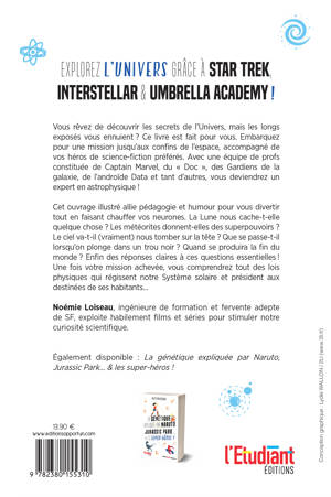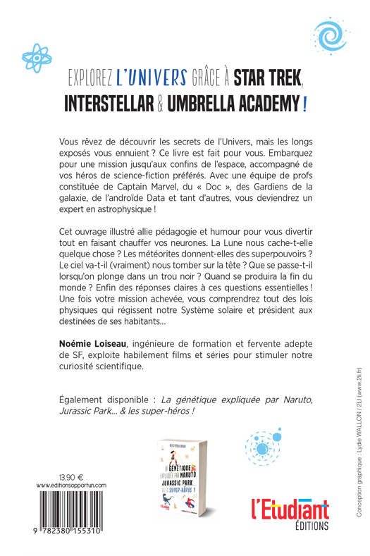 Vous rêvez de découvrir les secrets de l’Univers, mais les longs exposés vous ennuient ? Ce livre est fait pour vous. Embarquez pour une mission jusqu’aux confins de l’espace, accompagné de vos héros de science-fiction préférés. Avec une équipe de profs constituée de Captain Marvel, du « Doc », des Gardiens de la galaxie, de l’androïde Data et tant d’autres, vous deviendrez un expert en astrophysique !