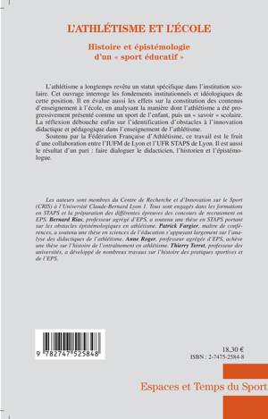 L'athlétisme a longtemps revêtu un statut spécifique dans l'institution scolaire. Cet ouvrage interroge les fondements institutionnels et idéologiques de cette position. Il en évalue aussi les effets sur la constitution des contenus d'enseignements à l'école, en analysant la manière dont l'athlétisme a été progressivement présenté comme un sport de l'enfant, puis un " savoir " scolaire. La réflexion débouche enfin sur l'identification d'obstacles à l'innovation didactique et pédagogique de l'enseignement de l'athlétisme.
