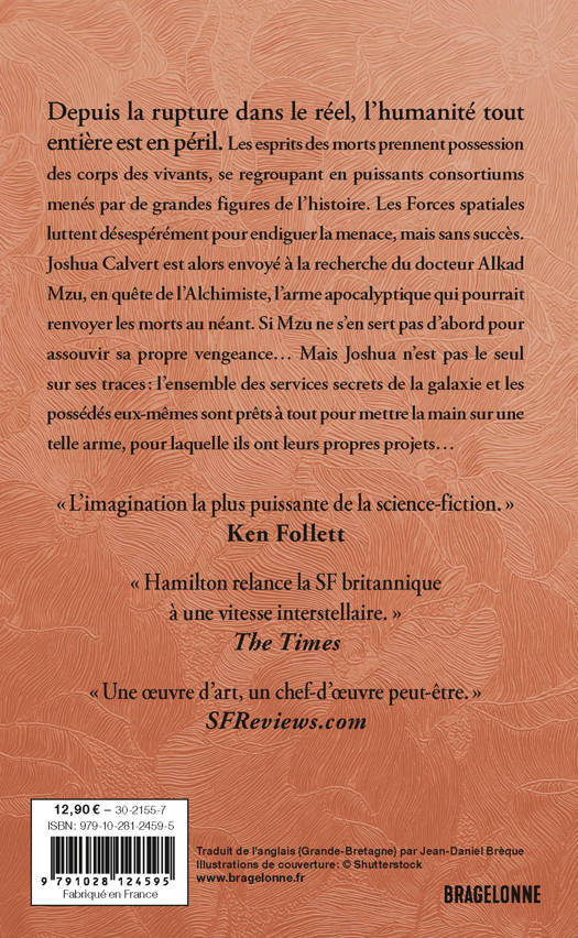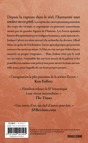 Depuis la rupture dans le réel, l'humanité tout entière est en péril. Les esprits des morts prennent possession des corps des vivants, se regroupant en puissants consortiums menés par de grandes figures de l'histoire. Les Forces spatiales luttent désespérément pour endiguer la menace, mais sans succès. Joshua Calvert est alors envoyé à la recherche du docteur Alkad Mzu, en quête de l'Alchimiste, l'arme apocalyptique qui pourrait renvoyer les morts au néant. Si Mzu ne s'en sert pas d'abord pour assouvir sa propre vengeance... Mais Joshua n'est pas le seul sur ses traces : l'ensemble des services secrets de la galaxie et les possédés eux-mêmes sont prêts à tout pour mettre la main sur une telle arme, pour laquelle ils ont leurs propres projets...