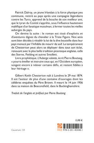 On devine la suite : le roman est tissé d’exploits et d’aventures dignes du chevalier à la Triste Figure. Nos amis sont bien décidés à rétablir la loi de la dive bouteille dans leur pays menacé par l’Infidèle de mourir de soif. Le tempérament de Chesterton peut alors se déployer dans tout son éclat, renouant avec la plus belle tradition picaresque anglaise, celle des Sterne, Fielding et autres Smollett.