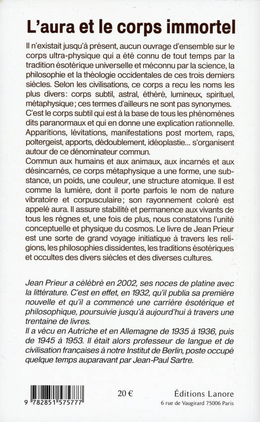 Il n'existait jusqu'à présent, aucun ouvrage d'ensemble sur le corps ultra-physique qui a été connu de tout temps par la tradition ésotérique universelle et méconnu par la science, la philosophie et la théologie occidentales de ces trois derniers siècles. Selon les civilisations, ce corps a reçu les noms les plus divers : corps subtil, astral, éthéré, lumineux, spirituel, métaphysique ; ces termes d'ailleurs ne sont pas synonymes. C'est le corps subtil qui est à la base de tous les phénomènes dits paranormaux et qui en donne une explication rationnelle. Apparitions, lévitations, manifestations post mortem, raps, poltergeist, apports, dédoublement, idéoplastie... s'organisent autour de ce dénominateur commun. Commun aux humains et aux animaux, aux incarnés et aux désincarnés, ce corps métaphysique a une forme, une substance, un poids, une couleur, une structure atomique. Il est comme la lumière, dont il porte parfois le nom de nature vibratoire et corpusculaire ; son rayonnement coloré est appelé aura. Il assure stabilité et permanence aux vivants de tous les règnes et, une fois de plus, nous constatons l'unité conceptuelle et physique du cosmos. Le livre de Jean Prieur est une sorte de grand voyage initiatique à travers les religions, les philosophies dissidentes, les traditions ésotériques et occultes des divers siècles et des diverses cultures.