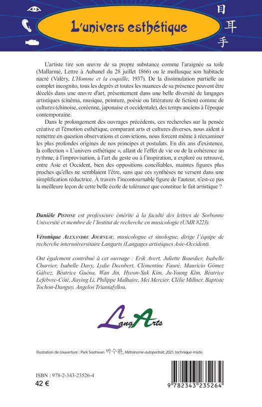 L’artiste tire son oeuvre de sa propre substance comme l’araignée sa toile (Mallarmé, Lettre à Aubanel du 28 juillet 1866) ou le mollusque son habitacle nacré (Valéry, L’Homme et la coquille, 1937). De la dissimulation partielle au complet incognito, tous les degrés et toutes les nuances de sa présence peuvent être décelés dans une oeuvre d’art, présentement dans une belle diversité de langages artistiques (cinéma, musique, peinture, poésie ou littérature de fiction) comme de cultures (chinoise, coréenne, japonaise et occidentale), des temps anciens à l’époque contemporaine. Dans le prolongement des ouvrages précédents, ces recherches sur la pensée créative et l’émotion esthétique nous aident à remettre en question observations et convictions, nous forcent même à réexaminer les plus profondes origines de nos principes et postulats. En dix ans d’existence, la collection « L’univers esthétique » a exploré ou retrouvé, entre Asie et Occident, bien des oppositions conciliables, maintes figures plus proches qu’elles ne semblaient l’être. À travers l’incontournable figure de l’auteur, n’est-ce pas la meilleure leçon de cette belle école de tolérance que constitue le fait artistique ?