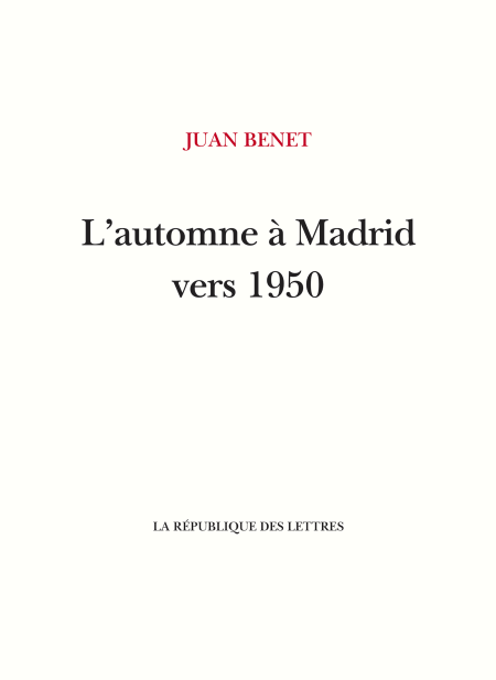 Quatre portraits d'écrivains et d'amis – Caneja Juan Manuel, Signe de Baroja, Le Madrid d'Eloy, Luis Martin-Santos, un memento – qui dessinent autant de figures de Madrid. Juan Benet, qui a grandi dans un Madrid familial et provincial d'un demi-million d'habitants à peine, un Madrid qui était encore chemin de transhumance dans les années 1950, partagé entre la peur et la pénurie, offre dans ces pages, par le biais d'une observation sagace, d'un art nuancé du portrait, d'une interprétation littéraire perspicace ou d'anecdotes pittoresques, le panorama nostalgique de ces années sombres où commençaient à briller quelques lueurs d'espoir.