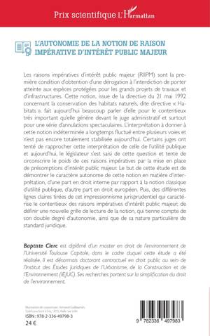 Les raisons impératives d'intérêt public majeur (RIIPM) sont la première condition d'obtention d'une dérogation à l'interdiction de porter atteinte aux espèces protégées pour les grands projets de travaux et d'infrastructures. Cette notion, issue de la directive du 21 mai 1992 concernant la conservation des habitats naturels, dite directive Habitats , fait aujourd'hui beaucoup parler d'elle pour le contentieux très important qu'elle génère devant le juge administratif et surtout pour une série d'annulations spectaculaires. L'interprétation à donner à cette notion indéterminée a longtemps fluctué entre plusieurs voies et n'est pas encore totalement stabilisée aujourd'hui. Certains juges ont tenté de rapprocher cette interprétation de celle de l'utilité publique et aujourd'hui, le législateur s'est saisi de cette question et tente de circonscrire le poids de ces raisons impératives par la mise en place de présomptions d'intérêt public majeur. Le but de cette étude est de démontrer le caractère autonome de cette notion en matière d'interprétation, d'une part en droit interne par rapport à la notion classique d'utilité publique, d'autre part en droit européen. Puis, des différentes lignes claires tirées de cet impressionnisme jurisprudentiel qui caractérise le contentieux des raisons impératives d'intérêt public majeur, de définir une nouvelle grille de lecture de la notion, qui tienne compte de son double degré d'autonomie, ainsi que de sa nature particulière de standard juridique.