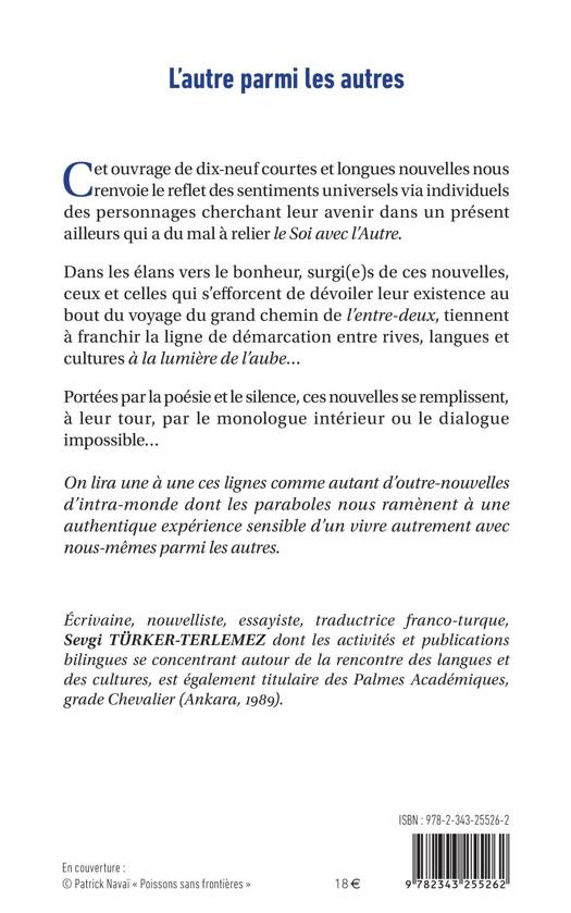Cet ouvrage de dix-neuf courtes et longues nouvelles nous renvoie le reflet des sentiments universels via individuels des personnages cherchant leur avenir dans un présent ailleurs qui a du mal à relier le Soi avec l'Autre. Dans les élans vers le bonheur, surgi(e)s de ces nouvelles, ceux et celles qui s'efforcent de dévoiler leur existence au bout du voyage du grand chemin de l'entre-deux, tiennent à franchir la ligne de démarcation entre rives, langues et cultures à la lumière de l'aube... Portées par la poésie et le silence, ces nouvelles se remplissent, à leur tour, par le monologue intérieur ou le dialogue impossible... On lira une à une ces lignes comme autant d'outre-nouvelles d'intra-monde dont les paraboles nous ramènent à une authentique expérience sensible d'un vivre autrement avec nous-mêmes parmi les autres.