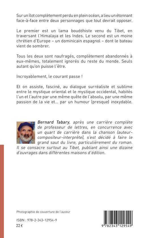Sur un îlot complétement perdu dans l'océan a lieu un face-à-face étonnant entre deux personnages que tout devrait opposer. Le premier est un lama bouddhiste venu du Tibet par l'Himalaya et les Indes. Le second est un moine chrétien d'Europe, dominicain espagnol dont le bateau vient de couler. Incroyablement, le courant passe entre eux. Fasciné, le lecteur découvre un dialogue surréaliste et sublime entre le mystique oriental et l'occidental, habités l'un et l'autre par une même quête d'absolu.
