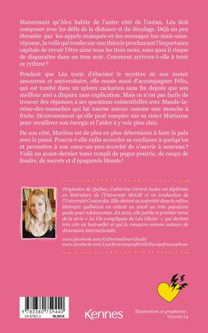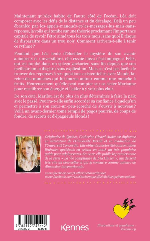 Maintenant qu'Alex habite de l'autre côté de l'océan, Léa doit composer avec les défis de la distance et du décalage. Déjà un peu ébranlée par les appels manqués et les messages lus mais sans-réponse, la voilà qui tombe sur une théorie proclamant l'importance capitale de revoir l'être aimé tous les trois mois, sans quoi il risque de disparaître dans un trou noir. Comment arrivera-t-elle à tenir ce rythme ? Pendant que Léa tente d'élucider le mystère de son avenir amoureux et universitaire, elle essaie aussi d'accompagner Félix, qui est tombé dans un spleen zackarien sans fin depuis que son meilleur ami a disparu sans explication. Mais ce n'est pas facile de trou- ver des réponses à ses questions existentielles avec Maude-la-reine-des-nunuches qui lui tourne autour comme une mouche à fruits. Heureusement qu'elle peut compter sur sa sister Marianne pour recalibrer son énergie et l'aider à y voir plus clair. De son côté, Marilou est de plus en plus déterminée à faire la paix avec le passé. Pourra-t-elle enfin accorder sa confiance à quelqu'un et permettre à son coeur-un- peu-écorché de s'ouvrir à nouveau ? Voilà un avant- dernier tome rempli de pogos pourris, de coups de foudre, de secrets et d'épagneuls blonds !