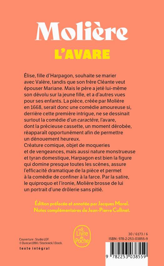 Créature comique, objet de moqueries et de vengeances, mais aussi nature monstrueuse et tyran domestique, Harpagon est bien la figure qui domine presque toutes les scènes, assure l’efficacité dramatique de la pièce et permet à la comédie de confiner à la farce. Par la satire, le quiproquo et l’ironie, Molière brosse de lui un portrait d’une drôlerie sans pitié.