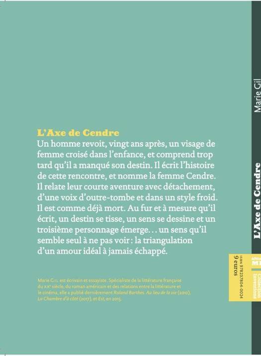Louis revoit, vingt ans après, un visage de femme croisé dans l'enfance, et comprend trop tard qu'il a manqué son destin. Il écrit l'histoire de cette rencontre, et nomme la femme Cendre. Il le fait avec détachement, comme déjà mort, dans un style froid. Car si les faits sont extraordinaires, il ne les comprend qu'au fil de la narration, et le dessin complet, celui de sa vie, ne se forme qu'au fil des pages, toujours trop tard.
