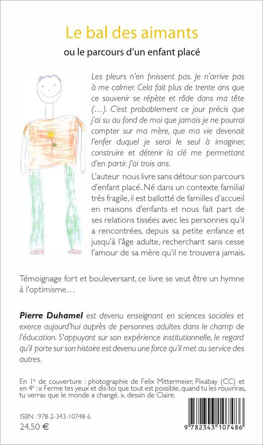 Dans ce récit, l'auteur nous livre sans détour son parcours d'enfant placé. Né dans un contexte familial très fragile, il est ballotté de familles d'accueil en maisons d'enfants et nous fait part de ses relations tissées aves les personnes qu'il a rencontrées, depuis sa petite enfance jusqu'à l'âge adulte, recherchant sans cesse l'amour de sa mère qu'il ne trouvera jamais. Témoignage fort et bouleversant, ce livre se veut être un hymne à l'optimisme.