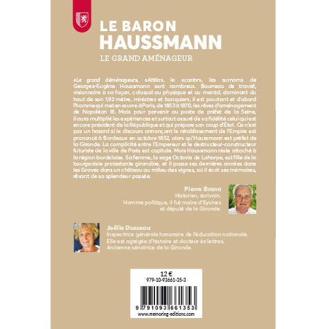 « Le grand déménageur », « Attila », le « castor », les surnoms de Georges-Eugène Haussmann sont nombreux. Bourreau de travail, visionnaire à sa façon, colossal au physique et au mental, dominant du haut de son 1,92 mètre, ministres et banquiers, il est pourtant et d’abord l’homme qui met en oeuvre à Paris, de 1853 à 1870, les rêves d’aménagement de Napoléon III. Mais pour parvenir au poste de préfet de la Seine, il aura multiplié les expériences et surtout assuré de sa fidélité celui qui est encore président de la République et qui prépare son coup d’État. Ce n’est pas un hasard si le discours annonçant le rétablissement de l’Empire est prononcé à Bordeaux en octobre 1852, alors qu’Haussmann est préfet de la Gironde. La complicité entre l’Empereur et le destructeur-constructeur futuriste de la ville de Paris est capitale. Mais Haussmann reste attaché à la région bordelaise. Sa femme, la sage Octavie de Laharpe, est fille de la bourgeoisie protestante girondine, et il passe ses dernières années dans. les Graves dans un château au milieu des vignes, où il écrit ses mémoires, rêvant de sa splendeur passée..