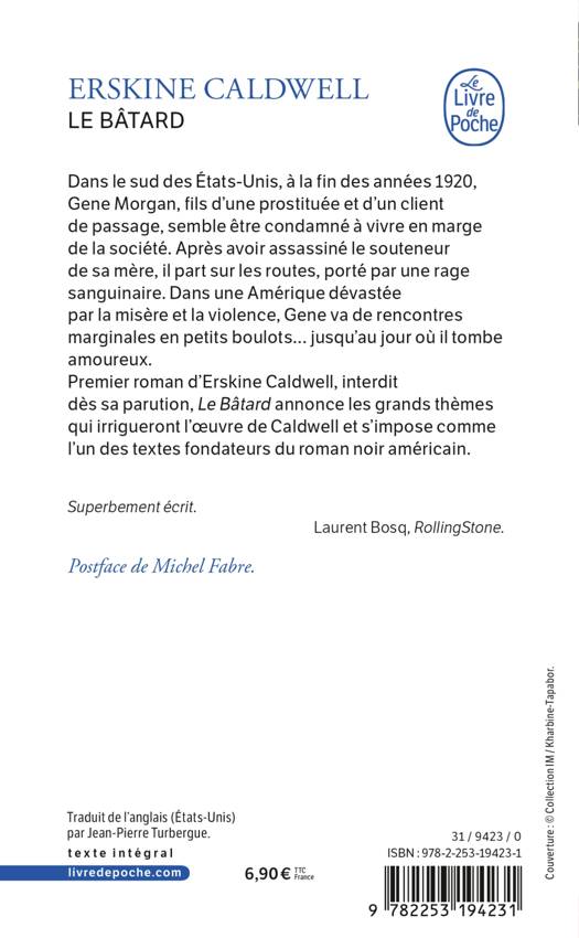Ne dans le sud des Etats-Unis dans les annees 1920, Gene Morgan, fils d'une prostituee et d'un client de passage, semble etre condamne a vivre en marge de la societe. Apres avoir assassine le souteneur de sa mere, il part sur les routes, porte par une rage sanguinaire. Dans une Amerique devastee par la misere et la violence, Gene va de rencontres marginales en petits boulots... jusqu'au jour ou il tombe amoureux. Premier roman d'Erskine Caldwell, interdit des sa parution, Le Batard annonce les grands themes qui irrigueront l'oeuvre de Caldwell et s'impose comme l'un des textes fondateurs du roman noir americain. Superbement ecrit, Laurent Bosq (RollingStone).