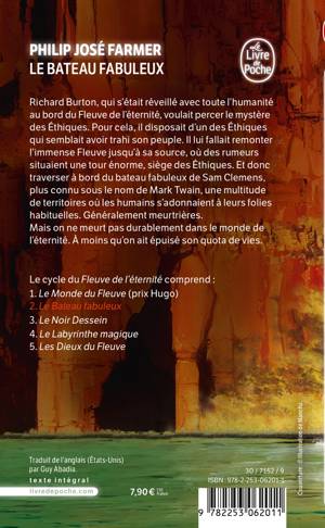 La série du Fleuve de l'éternité est un des chefs-d'oeuvre incon-testés de la science-fiction. Mêlant science-fiction, aventures et histoire authentique puisqu'elle évoque les vies terrestres de quelques-uns de ses figurants célèbres, de Jésus-Christ à Goering, elle a obtenu le Prix Hugo pour son premier titre, Le Monde du Fleuve, publié dans la même collection. Le Bateau fabuleux est le deuxième volume d'une fresque qui en comporte cinq.