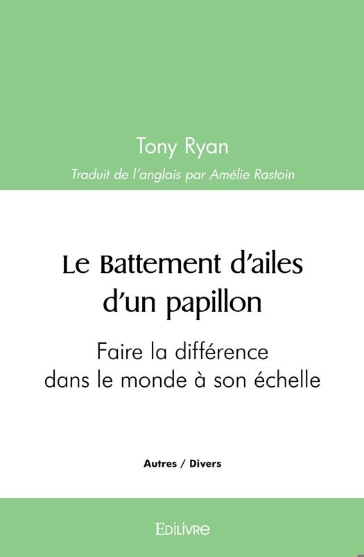 Vous pouvez faire une différence dans le monde tous les jours ! Dans un monde qui vit de changements importants, il n'est pas toujours aisé de croire que vous pouvez faire une différence au quotidien. Les efforts individuels semblent bien mineurs dans ce monde complexe. Cependant, à travers l'Histoire, tous les efforts humains ont été alimentés par la conviction que le pouvoir individuel peut engendrer le changement. Pour que la planète perdure, vous devez continuer à croire que vous pouvez faire une différence tous les jours. Mais comment redécouvrir ce pouvoir individuel ? Qu'est-ce que vous pouvez vraiment faire ? Bienvenue dans Le Battement d'ailes d'un papillon. Dans ce petit livre inspiré, l'auteur vous propose de nombreuses pensées et stratégies simples qui expliquent comment des ondes peuvent être générées dans votre vie au quotidien. Ces idées vont vous aider à croire en votre propre pouvoir, et vous convaincre que vos efforts peuvent faire une différence de façon positive. Après tout, chaque changement dans ce monde commence avec quelqu'un, quelque part. Le prochain changement pourrait bien venir de vous !