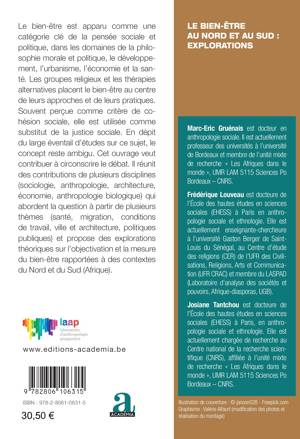 Cet ouvrage explore la notion de « bien-être » à partir de différentes thématiques (santé, migration, conditions de travail, ville et architecture, politiques publiques) en Europe et en Afrique. Il réunit les contributions de chercheurs de plusieurs disciplines : sociologie, anthropologie sociale, architecture, économie, anthropologie biologique.