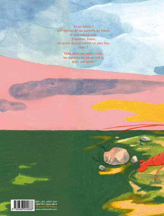 Et un bisou ? ont demandé les parents du bison, d'une même voix. S'appeler bisou, ce serait quand même un peu fou, non ? Mais dans ses yeux ronds, les parents du bison ont lu Non, AH NON !