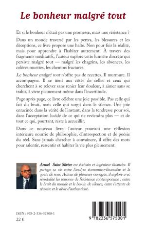 Et si le bonheur n'était pas une promesse, mais une résistance ? Dans un monde traversé par les pertes, les blessures et les déceptions, ce livre propose une halte. Non pour fuir la réalité, mais pour apprendre à l'habiter autrement. À travers des fragments méditatifs, l'auteur explore cette lumière discrète qui persiste malgré tout - malgré les chagrins, les absences, les colères muettes, les chemins fracturés. Le bonheur malgré tout n'offre pas de recettes. Il murmure. Il accompagne. Il se tient aux côtés de celles et ceux qui cherchent à se relever sans renier leur douleur, à aimer sans se trahir, à vivre pleinement même dans l'incertitude. Page après page, ce livre célèbre une joie possible. Pas celle qui fait du bruit, mais celle qui surgit dans le silence. Une joie enracinée dans la vérité de l'instant, dans la tendresse pour soi, dans l'acceptation lucide de ce qui ne reviendra plus - et de tout ce qui, pourtant, reste à accueillir. Dans ce nouveau livre, l'auteur poursuit une réflexion intérieure nourrie de philosophie, d'introspection et de poésie du réel. Sans jamais chercher à convaincre, il offre des mots pour ralentir, ressentir et habiter la vie plus pleinement.