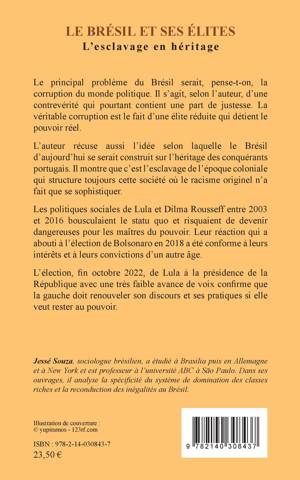 Le principal problème du Brésil serait, pense-t-on, la corruption du monde politique. Il s'agit, selon l'auteur, d'une contrevérité qui pourtant contient une part de justesse. La véritable corruption est le fait d'une élite réduite qui détient le pouvoir réel. L'auteur récuse aussi l'idée selon laquelle le Brésil d'aujourd'hui se serait construit sur l'héritage des conquérants portugais. Il montre que c'est l'esclavage de l'époque coloniale qui structure toujours cette société où le racisme originel n'a fait que se sophistiquer. Les politiques sociales de Lula et Dilma Rousseff entre 2003 et 2016 bousculaient le statu quo et risquaient de devenir dangereuses pour les maîtres du pouvoir. Leur réaction qui a abouti à l'élection de Bolsonaro en 2018 a été conforme à leurs intérêts et à leurs convictions d'un autre âge. L'élection, fin octobre 2022, de Lula à la présidence de la République avec une très faible avance de voix confirme que la gauche doit renouveler son discours et ses pratiques si elle veut rester au pouvoir.