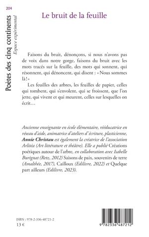 Faisons du bruit, dénonçons, si nous n'avons pas de voix dans notre gorge, faisons du bruit avec les mots tracés sur la feuille, des mots qui sonnent, qui résonnent, qui dénoncent, qui disent Nous sommes là ! Les feuilles des arbres, les feuilles de papier, celles qui tombent, qui s'envolent, qui se froissent, que l'on jette, qui vivent et qui meurent, celles sur lesquelles on écrit...