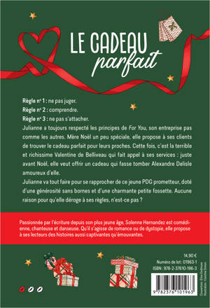 Julianne a toujours respecté les principes de For You, son entreprise pas comme les autres. Mère Noël un peu spéciale, elle propose à ses clients de trouver le cadeau parfait pour leurs proches. Cette fois, c'est la terrible et richissime Valentine de Belliveau qui fait appel à ses services : juste avant Noël, elle veut offrir un cadeau qui fasse tomber Alexandre Delisle amoureux d'elle.
