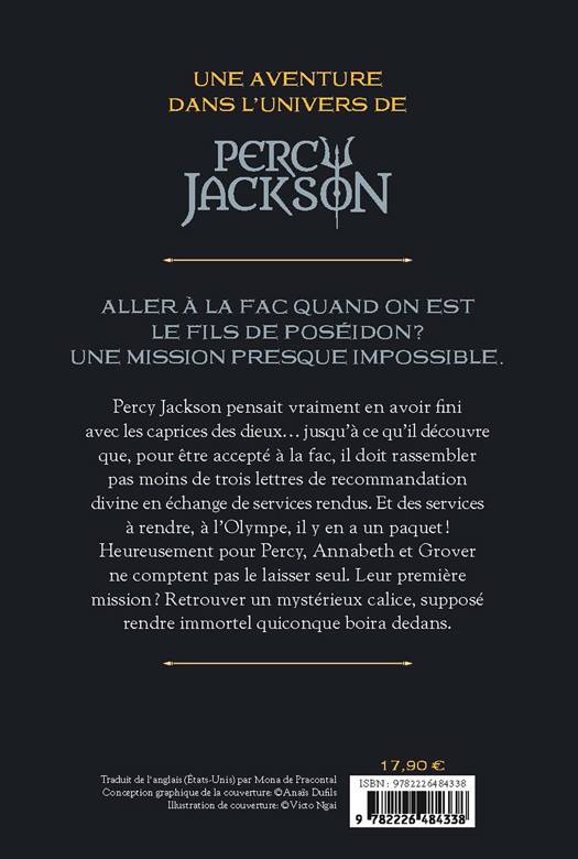 Percy Jackson pensait vraiment en avoir fini avec les caprices des dieux... jusqu'à ce qu'il découvre que, pour être accepté à la fac, il doit rassembler pas moins de trois lettres de recommandation divine en échange de services rendus. Et des services à rendre, à l'Olympe, il y en a un paquet !