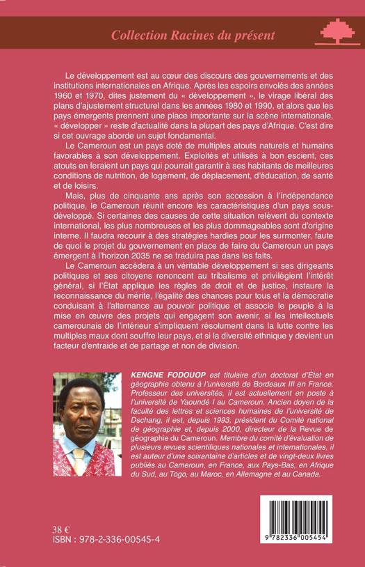 Le Cameroun est un pays doté de multiples atouts favorables à son développement. Exploités à bon escient, ils en feraient un pays qui pourrait garantir à ses habitants de meilleures conditions de vie. Mais le Cameroun accédera à un véritable développement si ses dirigeants politiques et ses citoyens renoncent au tribalisme et privilégient l'intérêt général, si l'Etat applique les règles de droit et de justice, si les intellectuels camerounais s'impliquent dans la lutte.