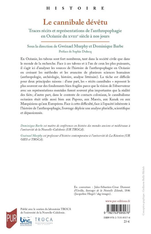 En Océanie, les tabous sont fort nombreux, tant dans la société civile que dans le monde de la recherche. Face à ces tabous et à l’un de ceux les plus puissants, il s’agit ici d’analyser les sources de l’histoire de l’anthropophagie en Océanie en croisant les méthodes et les avancées de plusieurs sciences humaines (anthropologie, archéologie, histoire, analyse littéraire). La tâche est difficile pour deux principales raisons : d’une part, les « récits cannibales » reposent le plus souvent sur des fondements bien fragiles parce que la vision de l’observateur avec ses représentations mentales furent souvent plus importantes que la réalité des faits; d’autre part, dans le contexte de contacts coloniaux, le cannibalisme océanien était utile aussi bien aux Papous, aux Maoris, aux Kanak ou aux Marquisiens qu’aux Européens. Face à cette difficulté, face à l’opacité inhérente à l’histoire de l’anthropophagie, l’ouvrage déploie une analyse plurielle, scientifique et dépassionnée.