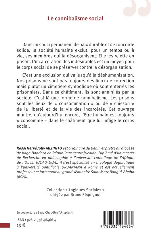 C'est une exclusion qui va jusqu'à la déshumanisation. Nos prisons ne sont pas toujours des lieux de correction mais plutôt un cimetière symbolique où sont enterrés les prisonniers. Dans ce châtiment, ils sont annihilés par la société. C'est là une forme de cannibalisme. Les prisons sont les lieux de consommation ou de cuisson de la liberté et de la vie des incarcérés. Cet ouvrage montre, qu'aujourd'hui encore, l'être humain est toujours consommé dans le châtiment que lui inflige le corps social.