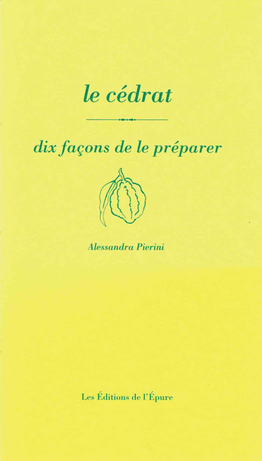 Jaune vif à maturité, ce gros citron à l'allure irrégulière et un peu cabossée est un agrume méconnu et surprenant dont tout se consomme. Il faut le couper en deux, apprécier son zeste au parfum intense, épicé et à l'amertume marquée, traverser une épaisse et spongieuse chair blanche, le ziste, qui prend presque toute la place, pour découvrir que son coeur ne renferme que très peu de pulpe à l'acidité mordante, avec beaucoup de pépins. Cette complexité aromatique et une texture moins juteuse que celle d'autres agrumes font qu'il est rarement consommé à l'état frais, mais plutôt utilisé après transformation.Les dix recettes : Pickles de cédrat - Carpaccio de cédrat mariné, radicchio - Salade tiède de poulpe, cédrat et pois chiches - Linguine au maquereau fumé et gremolata de cédrat - Risotto scamorza fumée, cédrat et câpres - Poulet au cédrat et aux olives - Marmelade de cédrat - Cédrat confit - Torta paradiso - Délice aux agrumes et ricotta.