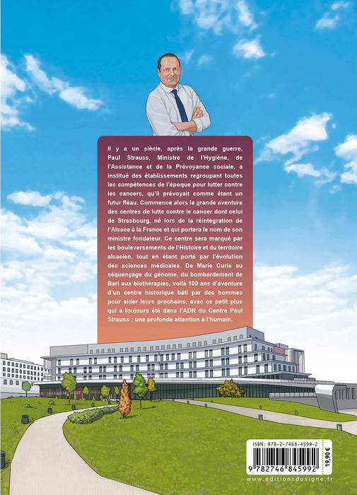 Il y a un siècle, après la grande guerre, Paul Strauss, Ministre de l'Hygiène, de l'Assistance et de la Prévoyance sociale, a institué des établissements regroupant toutes les compétences de l'époque pour lutter contre les cancers, qu'il prévoyait comme étant un futur fléau. Commence alors la grande aventure des centres de lutte contre le cancer dont celui de Strasbourg, né lors de la réintégration de l'Alsace à la France et qui portera le nom de son ministre fondateur. Ce centre sera marqué par les bouleversements de l'Histoire et du territoire alsacien, tout en étant porté par l'évolution des sciences médicales. De Marie Curie au séquençage du génome, du bombardement de Bari aux biothérapies, voilà 100 ans d'aventure d'un centre historique bâti par des hommes pour aider leurs prochains, avec ce petit plus qui a toujours été dans l'ADN du Centre Paul Strauss : une profonde attention à l'humain.