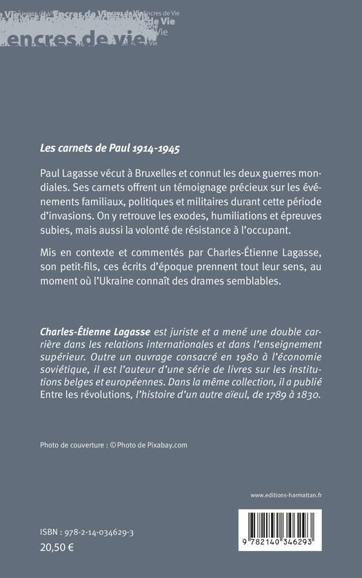 Paul Lagasse vécut à Bruxelles et connut les deux guerres mondiales. Ses carnets offrent un témoignage précieux sur les événements familiaux, politiques et militaires durant cette période d'invasions. On y retrouve les exodes, humiliations et épreuves subies, mais aussi la volonté de résistance à l'occupant. Mis en contexte et commentés par Charles-Étienne Lagasse, son petit-fils, ces écrits d'époque prennent tout leur sens, au moment où l'Ukraine connaît des drames semblables.