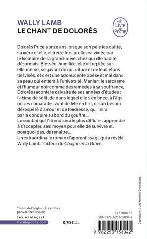 Dolorès Prize a 11 ans lorsque son père les quitte, sa mère et elle, et 13 lorsqu'elle est violée par le locataire de sa grand-mère, chez qui elle habite désormais. Blessée, humiliée, elle vit repliée sur elle-mème, se gavant de nourriture et de feuilletons télévisés, et c'est une adolescente obèse et mal dans sa peau qui entrera à l'université. Maniant le sarcasme et l'humour noir comme des remèdes à sa souffrance, Dolorès raconte le calvaire de ses années d'études: l'abîme de solitude dans lequel elle s'enfonce, à l'âge où ses camarades vont de fète en flirt, et son besoin désespéré d'amour et de tendresse, qui finira par la conduire au bord du gouffre... Le combat qui l'attend sera le plus difficile: apprendre à s'accepter, seul moyen pour elle de survivre et, pourquoi pas, de renaître... * Un extraordinaire roman d'apprentissage qui a révélé Wally Lamb, l'auteur du Chagrin et la grâce.
