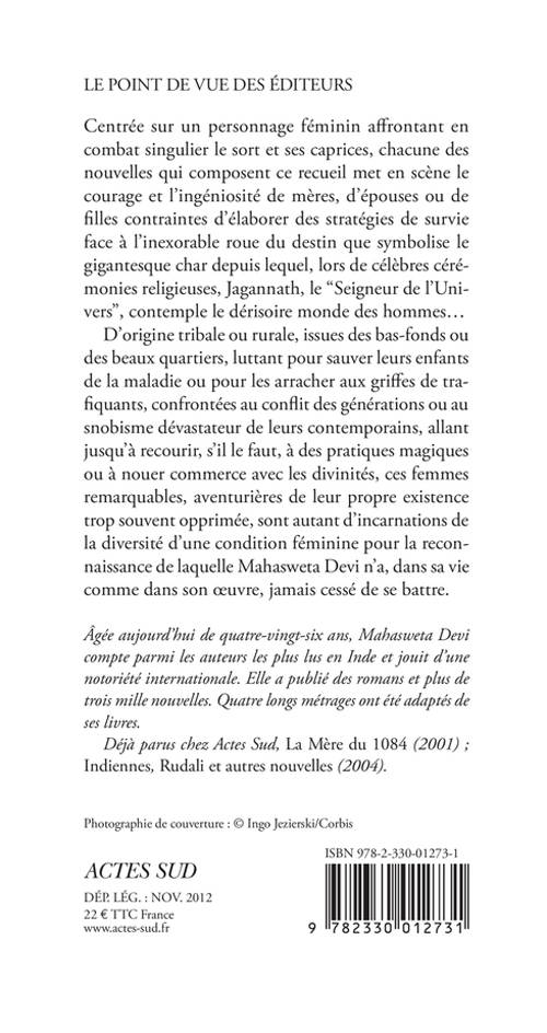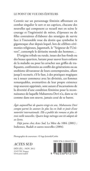 Variations sur le thème de la famille dans tous ses états, dix nouvelles qui brossent un portrait de la conjugalité et des rapports intergénérationnels dans un milieu social déchiré entre nécessités économiques et aspirations moins matérialistes. Par la grande dame des lettres bengalies, Mahasweta Devi, qui compte aujourd'hui parmi les auteurs les plus lus en Inde et jouit d'une notoriété internationale.