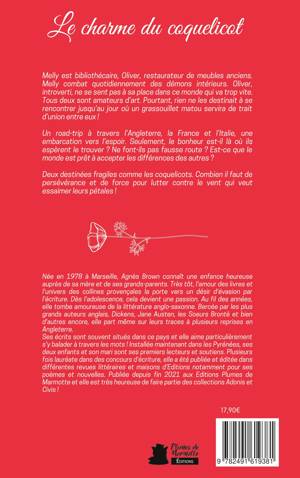 Melly est bibliothécaire, Oliver, restaurateur de meubles anciens. Melly combat quotidiennement des démons intérieurs. Oliver, introverti, ne se sent pas à sa place dans ce monde qui va trop vite. Tous deux sont amateurs d'art. Pourtant, rien ne les destinait à se rencontrer jusqu'au jour où un grassouillet matou servira de trait d'union entre eux ! Un road-trip à travers l'Angleterre, la France et l'Italie, une embarcation vers l'espoir. Seulement, le bonheur est-il là où ils espèrent le trouver ? Ne font-ils pas fausse route ? Est-ce que le monde est prêt à accepter les différences des autres ? Deux destinées fragiles comme les coquelicots. Combien il faut de persévérance et de force pour lutter contre le vent qui veut essaimer leurs pétales ! Feel-good - Collection Civis Thèmes : autisme, Asperger, différence, acceptation