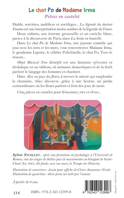 Voici cinq pièces en castelet pour frissonner, rire et rêver : La légende du docteur Faustus : une interprétation moins sombre de la légende de Faust. La Seine en bouteille : À la découverte de Paris... Le chat Po de Madame Irma : une comédie qui joue avec les sons et les mots. Objet Musical Non Identifié : une fantaisie où animaux domestiques et de la forêt parlent le langage des hommes et chantent. Alice au pays des fleurs : À la découverte d'un jardin extraordinaire où les fleurs parlent.