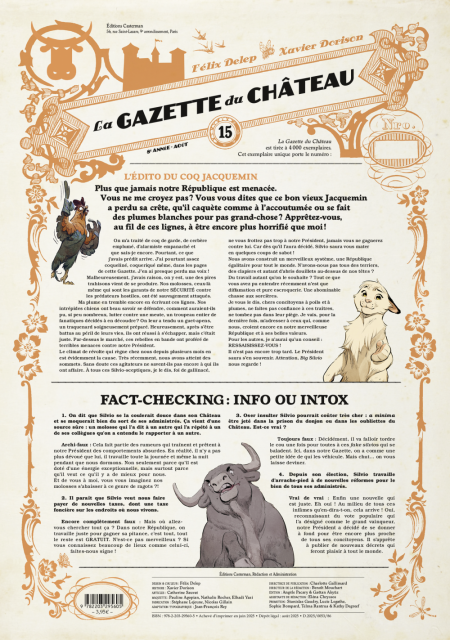 Miss B et ses camarades de lutte semblent avoir réussi ! Non seulement ils ont remporté l’élection que Silvio avait tenté de voler, mais ils ont aussi réussi à faire éclater la terrible vérité qui se cachait derrière la menace des loups. Le Mouvement des Marguerites est plus mobilisé que jamais pour renverser le taureau dictateur… mais c’est compter sans le refus catégorique de Silvio, qui s’isole de plus en plus et menace d’exécuter publiquement tout opposant à sa politique arbitraire. Rebutés par une escalade de violence sans précédent, les chiens eux-mêmes commencent à douter des ordres de leur maître… Miss B, César et Azélar auront-ils raison du cruel taureau ? Une vie juste et paisible est-elle seulement possible au Château ?