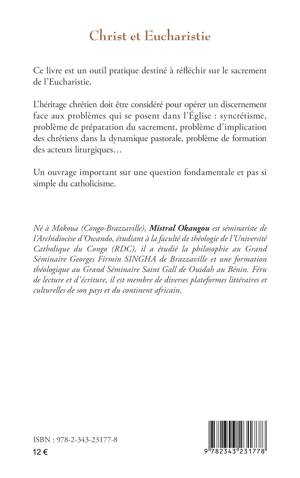 Cet ouvrage est un outil pratique destiné à réfléchir sur le sacrement de l'Eucharistie. L'héritage chrétien doit être considéré pour opérer un discernement face aux problèmes qui se posent dans l'Église: syncrétisme, problème de préparation du sacrement, problème d'implication des chrétiens dans la dynamique pastorale, problème de formation des acteurs liturgiques.