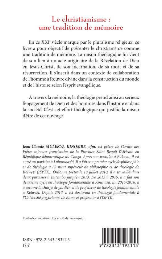 En ce XXIe siècle marqué par le pluralisme religieux, cet ouvrage a pour objectif de présenter le christianisme comme une tradition de mémoire. La raison théologique lui vient de son lien à un acte originaire de la Révélation de Dieu en Jésus-Christ, de son incarnation, de sa mort et de sa résurrection. Il s'inscrit dans un contexte de collaboration de l'homme à l'oeuvre divine dans la construction du monde et de l'histoire selon l'esprit évangélique. À travers la mémoire, la théologie prend ainsi au sérieux l'engagement de Dieu et des hommes dans l'histoire et dans la société.