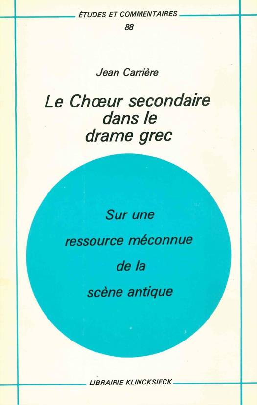 Ces pages viennent plaider en faveur d'un oublie. Il s'agit du choeur secondaire du drame tragique ou comique grec. Mais definissons bien le terme, qui pourrait preter a confusion si l'on ne distinguait d'abord soigneusement les principales formations chorales susceptibles d'intervenir dans l'orchestra du theatre antique. Le plus souvent le choeur antique se presente comme un groupe homogene et tous les choreutes evoluent de conserve sous la conduite du coryphee assite de deux parastates: ils sont en principe douze dans tout le theatre d'Eschyle, quinze dans ceux de Sophocle et d'Euripide, vingt-quatre chez Aristophane. Mais il n'est pas rare, d'abord, que ce choeur integral se divise en deux demi-choeurs controles par chacun des deux parastates et dont les mouvements, le chant, le jeu peuvent alterner, mais se correspondent, se completent mutuellement, bref restent a peu pres solidaires: tel est le cas dans l'exodos des Sept contre Thebes d'Eschyle, ou le cortege funebre des freres ennemis s'organise et s'ebranle aux accents du threne stichomythique pour lequel alternent les hemichoria; de meme probablement dans le commos des Choephores pour ce qui est de l'approche enveloppante, en dichorie, de la sepulture royale, et surement au debut de l'Alceste d'Euripide, au moins dans la parodos, distribuee elle aussi entre les deux groupes: les roles de ces demi-choeurs sont etroitement complementaires.