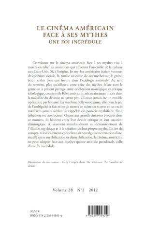 Ce volume vise à mettre en relief les mutations qui affectent l'ensemble de la culture aux Etats-Unis. Au sein du western, plus qu'ailleurs, cette crise des mythes éclate tant le genre est à présent partagé entre célébration nostalgique et critique idéologique. La machine hollywoodienne, joue le jeu de l'ambiguïté et fait mine de mettre en scène ses travers et excès mais sans jamais oublier de rappeler son pouvoir mythifiant.