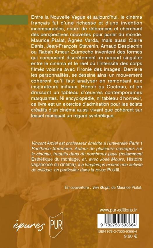 Entre la Nouvelle Vague et aujourd’hui, le cinéma français fut d’une richesse et d’une invention incomparables, nourri de références et cherchant des perspectives nouvelles pour parler du monde. Maurice Pialat, Agnès Varda, mais aussi Claire Denis, Jean-François Stévenin, Arnaud Desplechin ou Rabah Ameur-Zaïmeche inventent des formes qui composent discrètement un rapport singulier entre le cinéma et le réel où l’intensité des corps filmés voisine avec l’ironie des images. Derrière les personnalités, se dessine ainsi un mouvement cohérent qu’il faut analyser en remontant aux inspirateurs initiaux, Renoir ou Cocteau, et en dressant un tableau d’oeuvres contemporaines marquantes. Ni encyclopédie, ni tableau d’honneur, ce livre est un exercice d’admiration pour les éclats créatifs d’un cinéma aussi vivant que cohérent sur lequel manquait un regard synthétique.