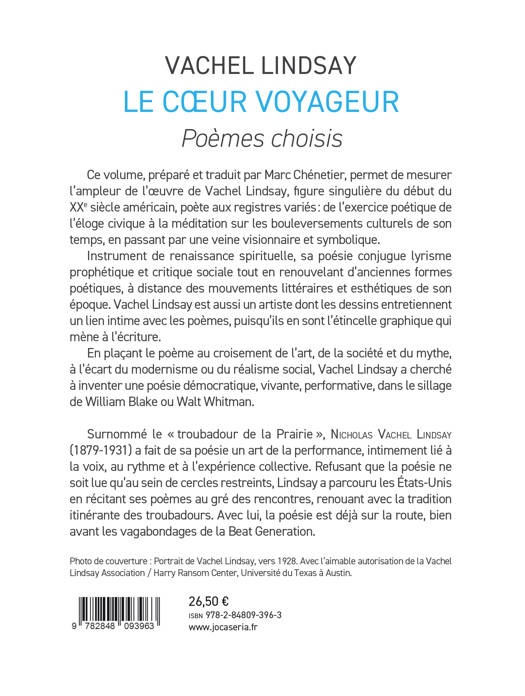 Nicholas Vachel Lindsay (1879-1931) occupe une place singulière dans le paysage littéraire américain du début du XXe siècle. Surnommé le «â¯troubadour de la Prairie⯻, il a fait de sa poésie un art de la performance, intimement lié à la voix, au rythme et à l’expérience collective. Refusant que la poésie ne soit lue qu’au sein de cercles restreints, Lindsay a parcouru les États-Unis en récitant ses poèmes au gré des rencontres, renouant avec la tradition itinérante des troubadours. Avec lui, la poésie est déjà sur la route, bien avant les vagabondages de la Beat Generation. Préparé par Marc Chénetier, qui a consacré sa thèse d’Etat (1979) et de nombreuses publications à Vachel Lindsay, ce volume permet de mesurer l’étendue de l’oeuvre d’un poète aux registres très variésâ: de l’exercice poétique de l’éloge civique (présence du républicain Abraham Lincoln, dont la demeure se trouvait voisine de la sienne, comme celle de John Peter Altgeld, démocrate progressiste) à la méditation sur les bouleversements culturels de son temps (essor de la société de masse et du cinéma, sur lequel il publia en 1914 le tout premier ouvrage, The Art of the Moving Picture), en passant par une veine visionnaire et symbolique qui fait de la poésie un instrument de renaissance spirituelle. On découvre en Vachel Lindsay un poète qui conjugue lyrisme prophétique et critique sociale tout en renouvelant d’anciennes formes poétiques, à distance des mouvements littéraires et esthétiques de son époque. C’est aussi un artiste dont les dessins entretiennent un lien intime avec les poèmes, puisqu’ils en sont comme l’étincelle graphique, celle qui mène à l’écriture poétique. La poésie de Lindsay révèle une tension permanente entre idéalisme et lucidité critique et politique. S’il exalte la possibilité d’un art fédérateur, capable d’unir une communauté nationale autour d’images fortes et de mythes fondateurs, il n’ignore pas les menaces que l’ère moderne, industrielle et médiatique, fait peser sur la culture, les femmes et les hommes. Prenant fermement racine dans son temps et dans l’histoire, l’oeuvre de Lindsay ne renonce pas pour autant à une visée universelle. En marge du modernisme comme du réalisme social, Vachel Lindsay a cherché à inventer une poésie démocratique, vivante, performative. Sa démarche créatrice, qui place le poème au croisement de l’art, de la société et du mythe, a donné naissance à une oeuvre qui avance sur tous les fronts, dans le sillage d’illustres prédécesseurs comme William Blake ou Walt Whitman.