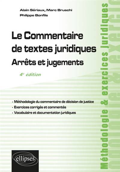 Cet ouvrage sera un complément méthodologique utile aux étudiants dans leur pratique du commentaire de texte juridique.